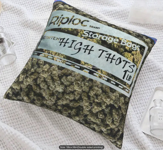 Ziplock Vintage Weed Baggie Pillow, 18x18”