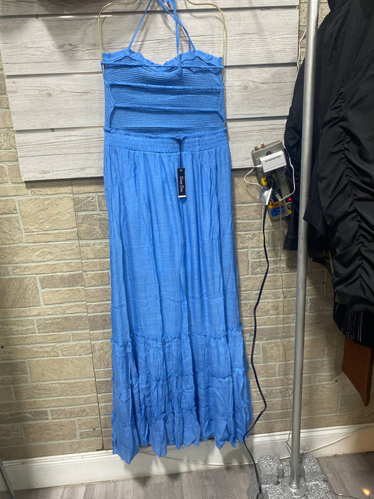 ROYAL BLUE WOMEN'S LONG SLEEVE CROP TOP WITH BRALETTE & ELASTIC WAIST MAXI SKIRT STUDS FISH NET 3PC. SET. BCCT 70805